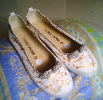 Sparkling white base with gold spray on it. Added with silver lace and button.